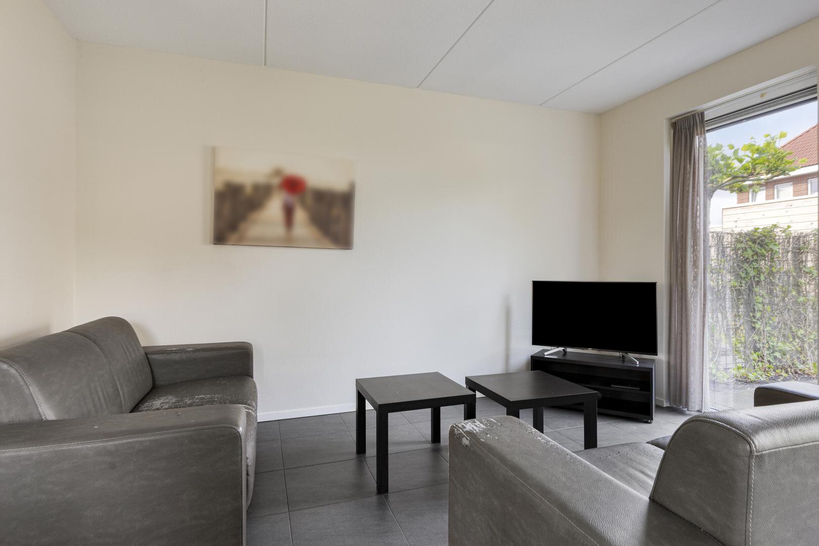 - L-vormige woonkamer met veel raampartijen en een plavuizenvloer;