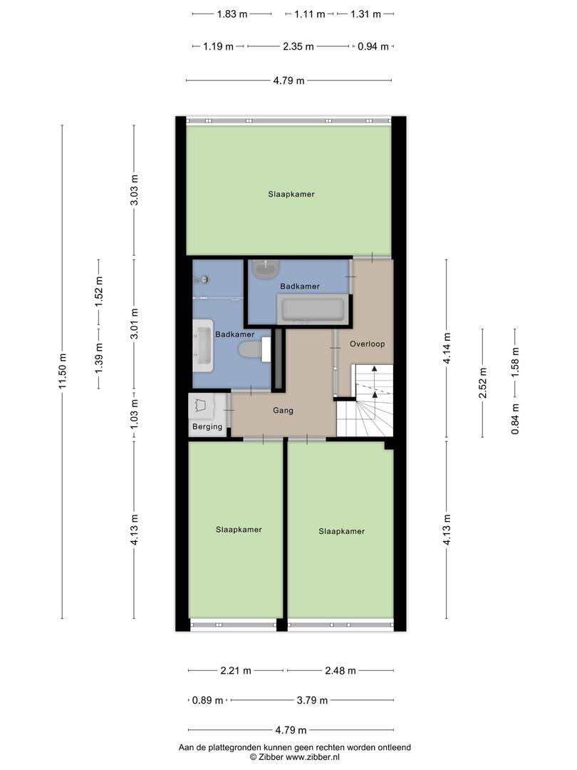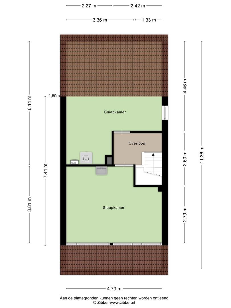 2e Verdieping: overloop, voorzolder en twee ruime slaapkamers onder het schuine dak. Op deze verdieping bevindt zich de CV-ketel en nog een tweede aansluiting voor de wasmachine.