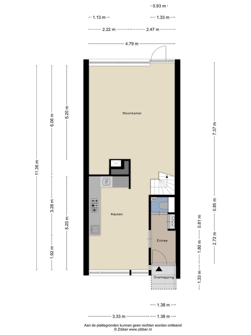 Diepe voortuin met toegang naar de entree, ruime hal met meterkast en toilet. Binnenkomst via de woonkeuken van ca. 17m2 met een moderne keuken in lichte kleurstellingen en diverse inbouwapparatuur. Ruime- en lichte woonkamer met open haard-partij en een groot raamkozijn met loopdeur naar de beschutte achtertuin van ruim 11 meter diep. De achtertuin ligt op het oosten, waardoor je volop de ochtend- en middagzon hebt. Achter in de tuin bevindt zich de vrijstaande dubbele berging (1 van steen en 1 van hout). De achtertuin kun je ook via de steeg bereiken. Vaste trap naar: