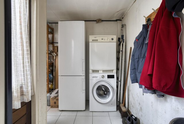 De doorzonwoonkamer, met veel natuurlijk licht, heeft een royale open keuken met doorloop naar de bijkeuken, toilet en de achterplaats. Op de verdieping vind je de 2 slaapkamers en de doucheruimte met 2e toilet. Bovendien heeft de woning zowel voortuin en een kleine achterplaats.