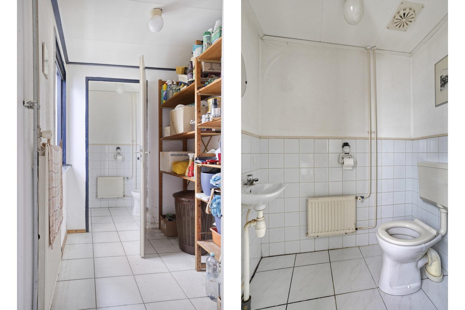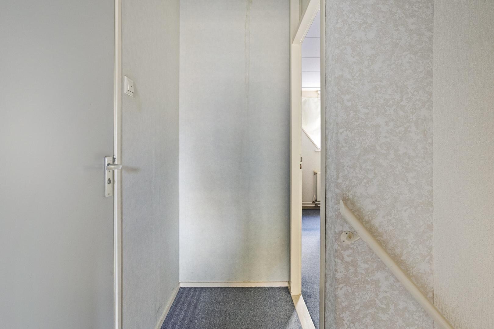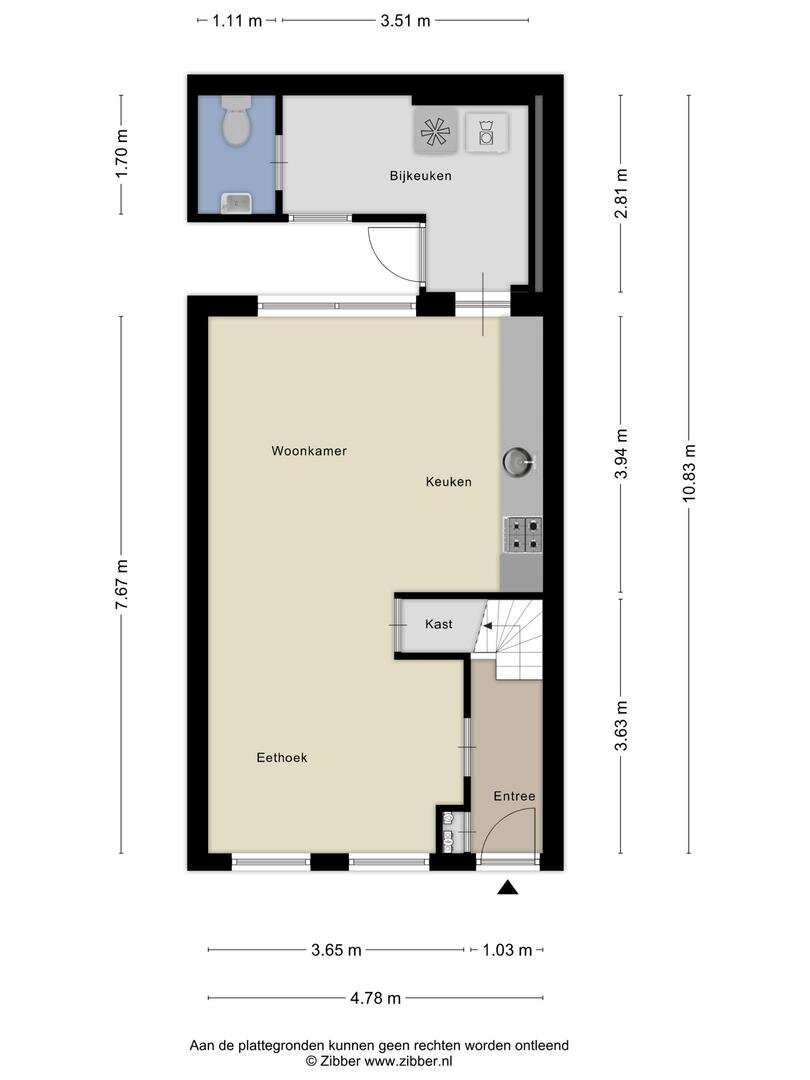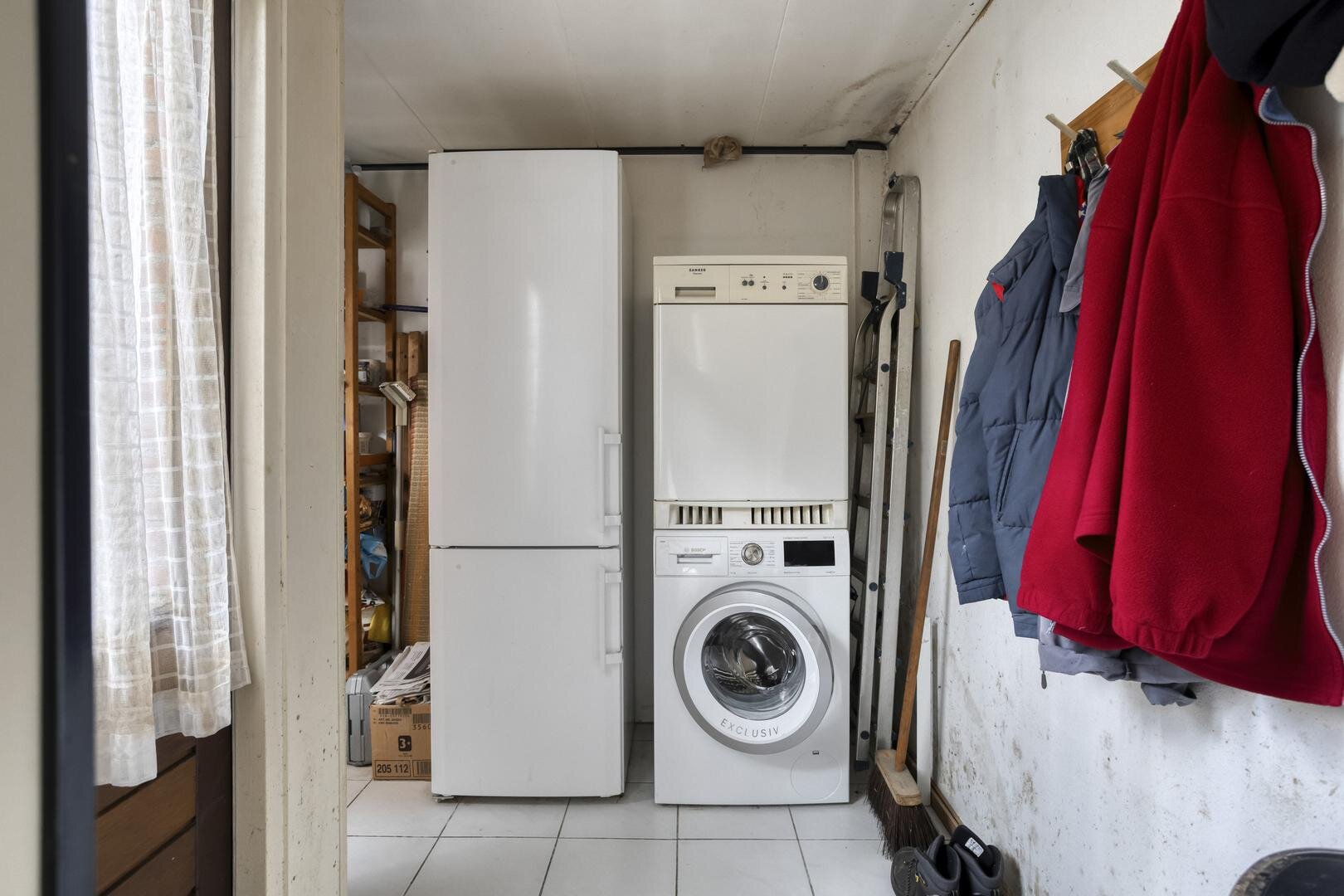 Via de entree kom je in de hal, waar zich de meterkast, trapopgang en de toegangsdeur naar de woonkamer bevinden. Deze lichte woonkamer heeft grote ramen in de voor- en achtergevel. De open keuken is royaal maar wel eenvoudig van opzet. Vanuit de keuken kom je in de bijkeuken met opstelplaats voor witgoed, de separate toiletruimte en toegang naar de kleine achterplaats.