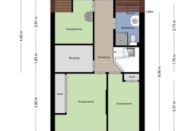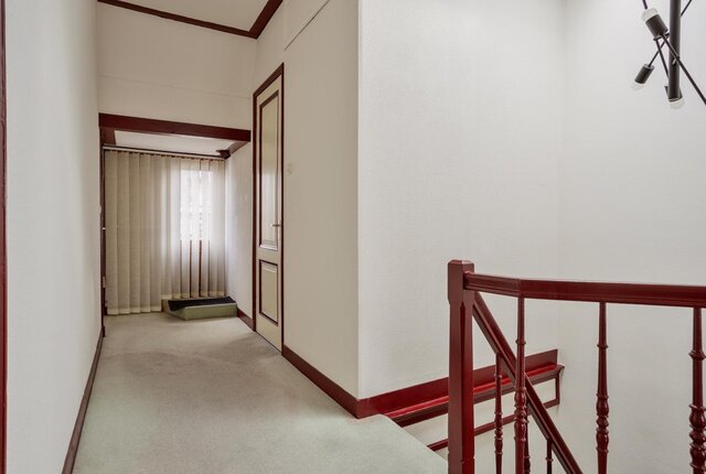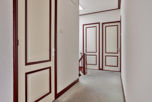 1e verdieping: ruim overloop met aangrenzend de badkamer, 3 slaapkamers en een opbergruimte.