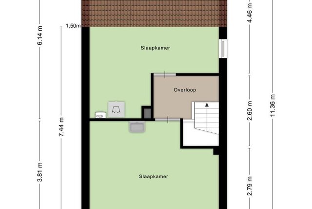2e Verdieping: overloop, voorzolder en twee ruime slaapkamers onder het schuine dak. Op deze verdieping bevindt zich de CV-ketel en nog een tweede aansluiting voor de wasmachine.