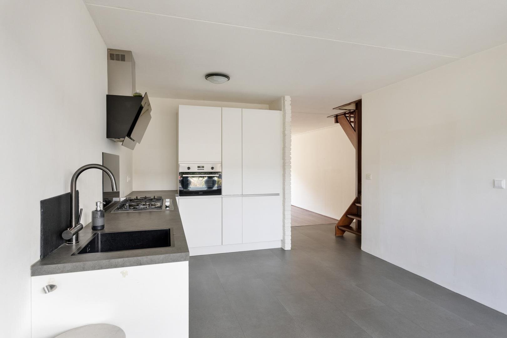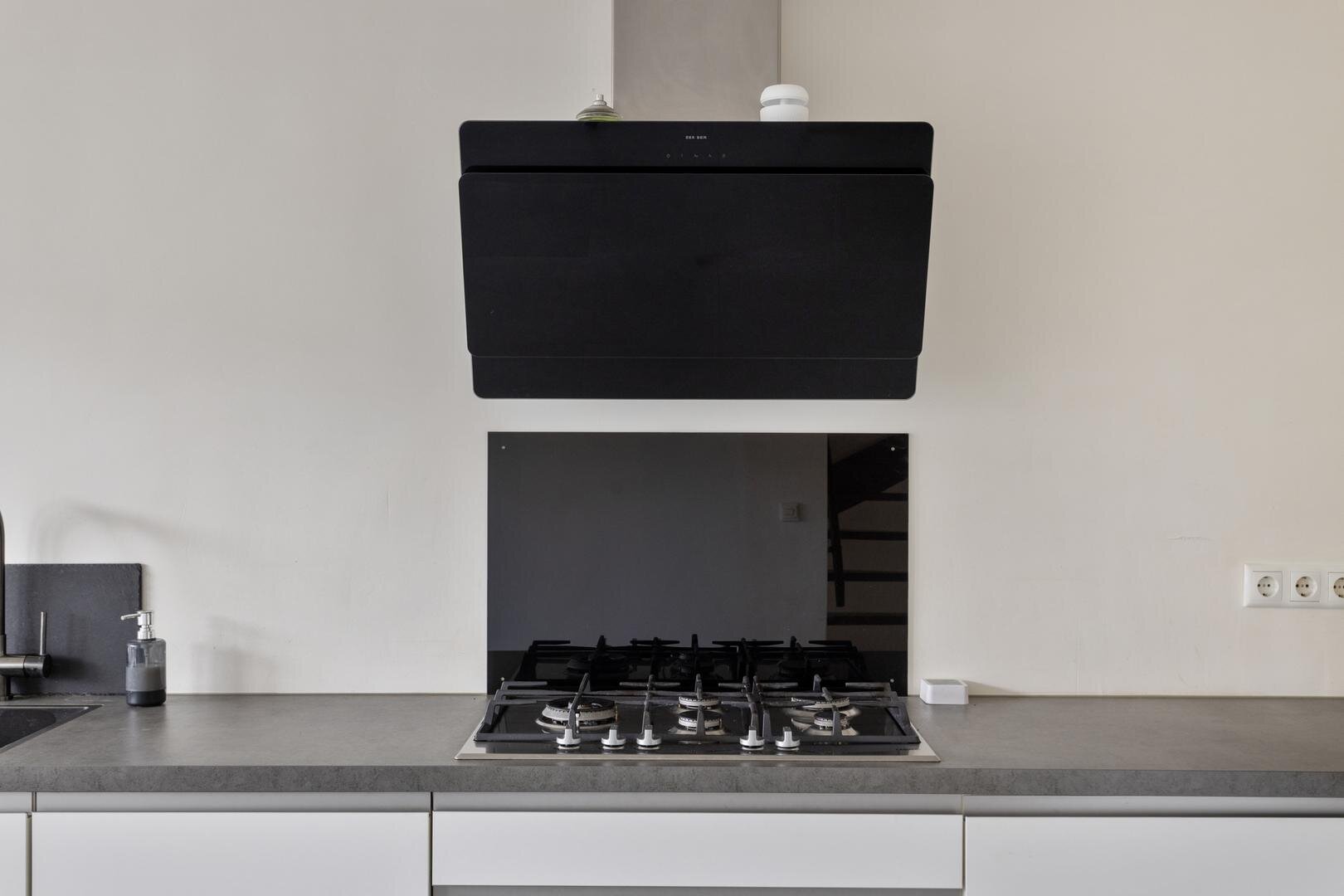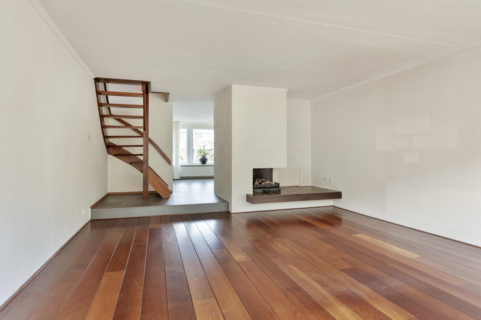 Diepe voortuin met toegang naar de entree, ruime hal met meterkast en toilet. Binnenkomst via de woonkeuken van ca. 17m2 met een moderne keuken in lichte kleurstellingen en diverse inbouwapparatuur. Ruime- en lichte woonkamer met open haard-partij en een groot raamkozijn met loopdeur naar de beschutte achtertuin van ruim 11 meter diep. De achtertuin ligt op het oosten, waardoor je volop de ochtend- en middagzon hebt. Achter in de tuin bevindt zich de vrijstaande dubbele berging (1 van steen en 1 van hout). De achtertuin kun je ook via de steeg bereiken. Vaste trap naar:
