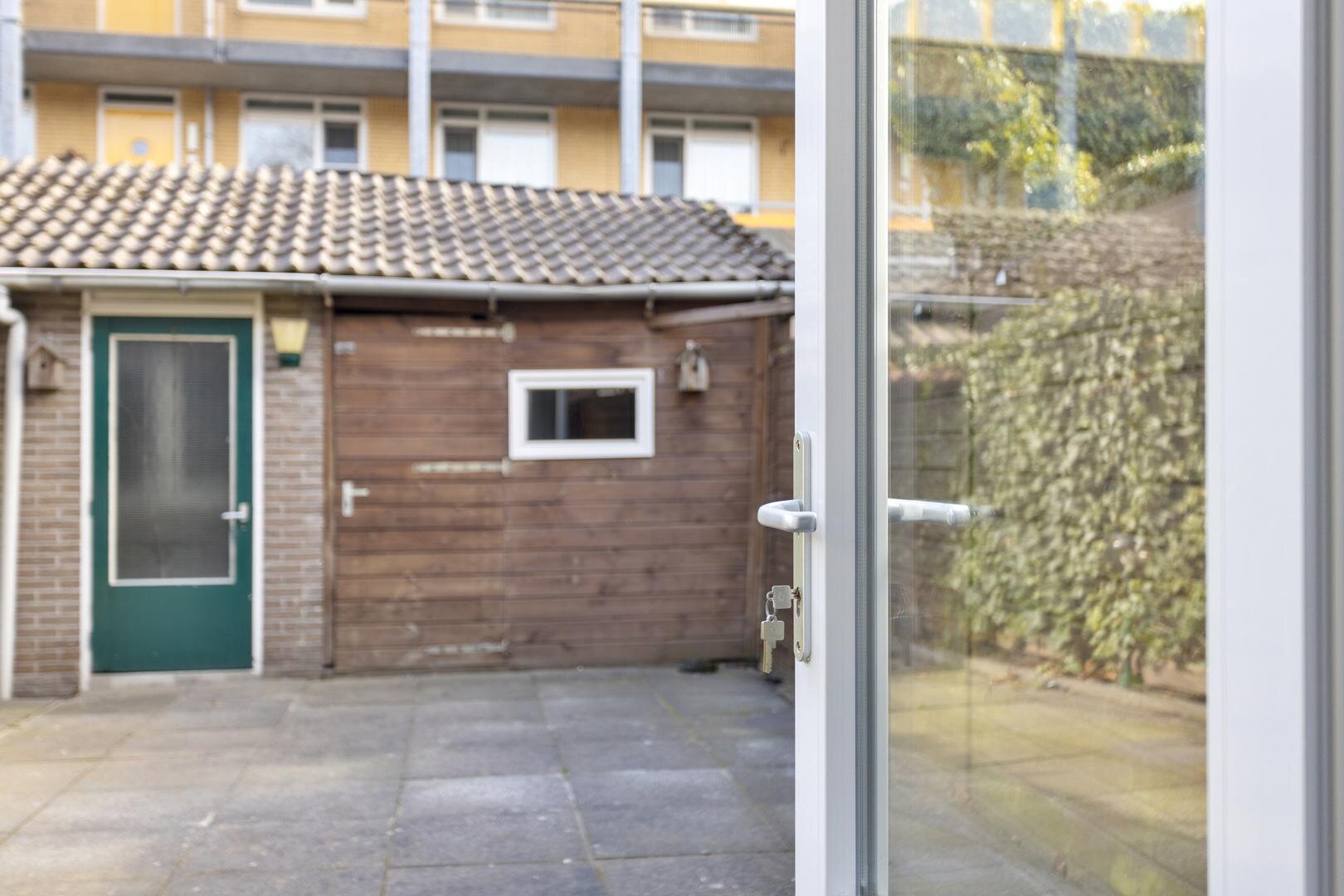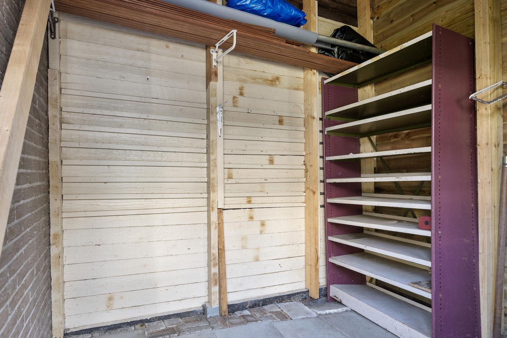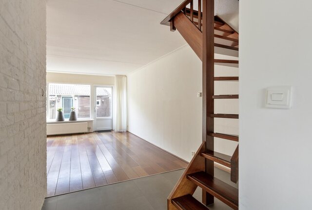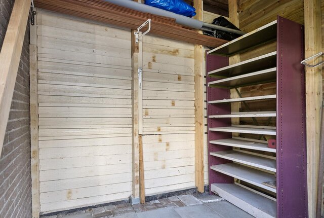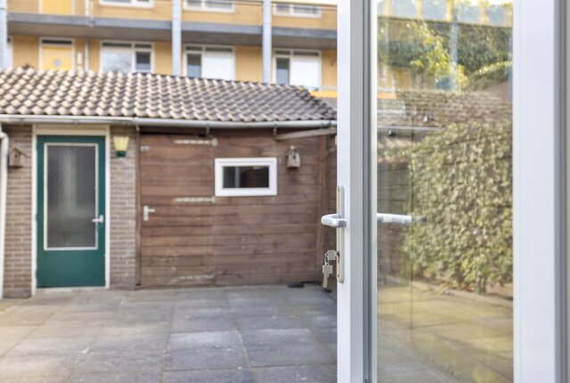 Tuin: de achtertuin is nagenoeg volledig betegeld, ruim 11 meter diep en 5,5 meter breed. Bereikbaar via een achterom en er zijn 2 bergingen. De voortuin ligt op het westen en is 8 meter diep. Door de diepe voortuin en de brede stoep woon je ver van de straat, wat zorgt voor de nodige privacy.
