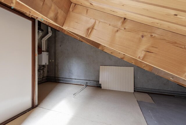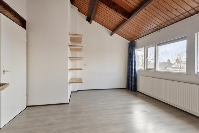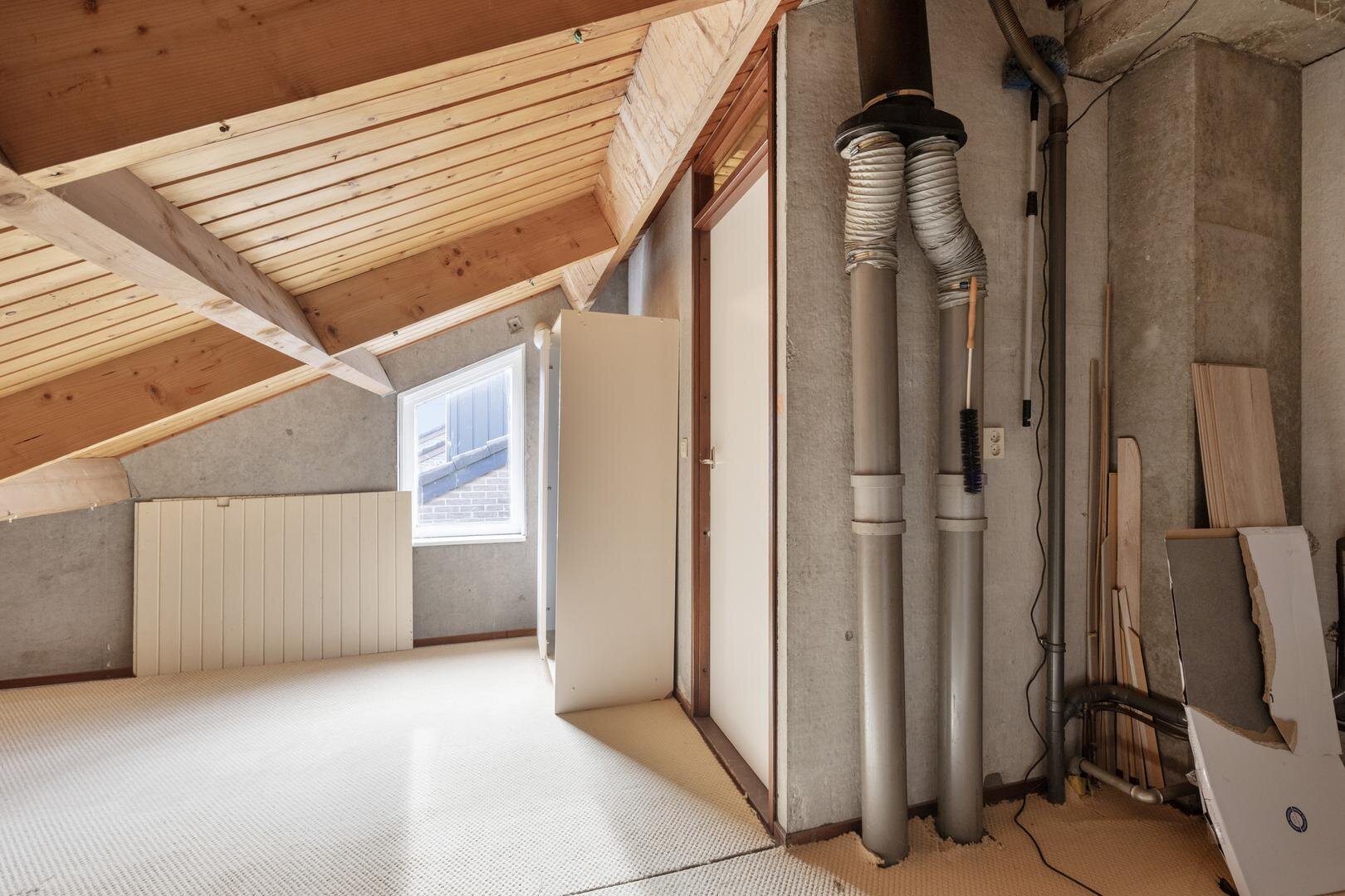 2e Verdieping: overloop, voorzolder en twee ruime slaapkamers onder het schuine dak. Op deze verdieping bevindt zich de CV-ketel en nog een tweede aansluiting voor de wasmachine.