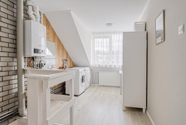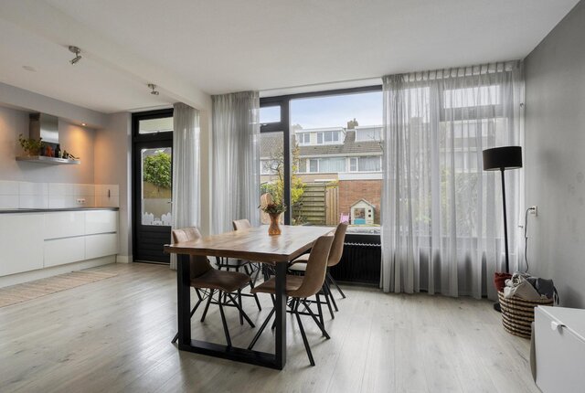 Op de begane grond is een ruime woonkamer van 32m2 met veel lichtinval. De keuken is recentelijk gerenoveerd in 2020 en is voorzien van diverse inbouwapparatuur. Op de eerste verdieping zijn 4 ruime slaapkamers en een moderne badkamer welke is uitgerust met een inloopdouche, wastafel en 2e toilet. Op de 2e verdieping, welke bereikbaar is via een vaste trap, bevindt zich de zeer royale 5e slaapkamer met een grote dakkapel. Op de overloop/voorzolder vind je de opstelplaats voor de wasmachine en droger en de CV ketel (Nefit, bjr. 2022).