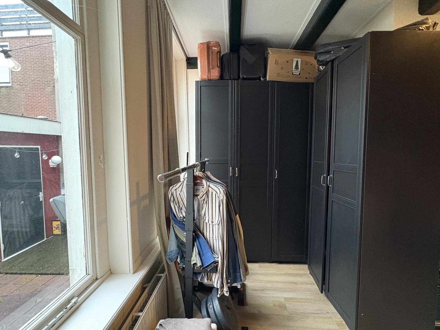 Gang/overloop met aangrenzend de woonkamer aan de straatzijde (ca. 50m2), dichte keuken (ca. 10m2), badkamer (ca. 6 m2) met douche en vaste wastafel. Er is een afzonderlijk toilet. Op de noordzijde is de slaapkamer gelegen van circa 20m2. Er kan gebruik gemaakt worden van een terras van circa 10m2.