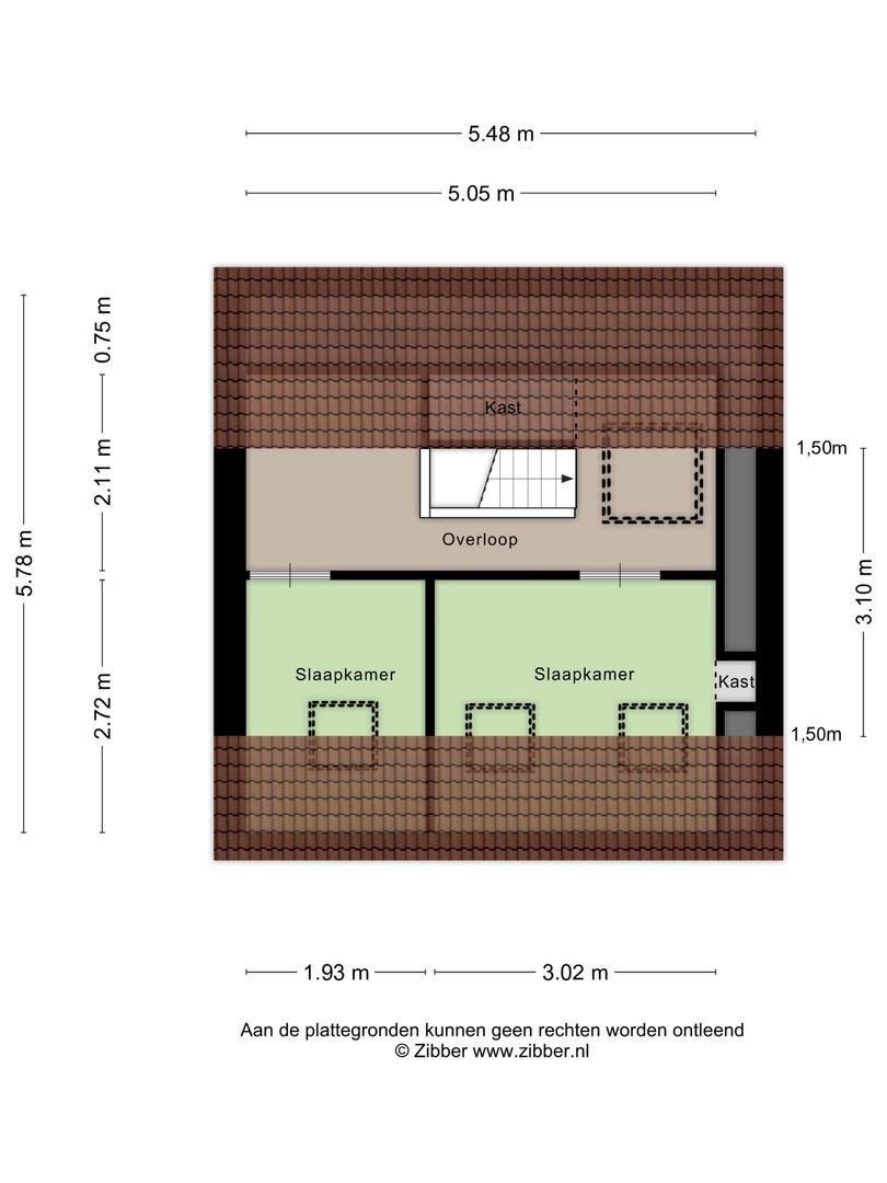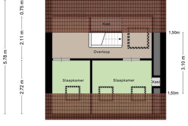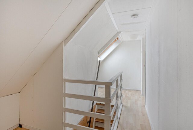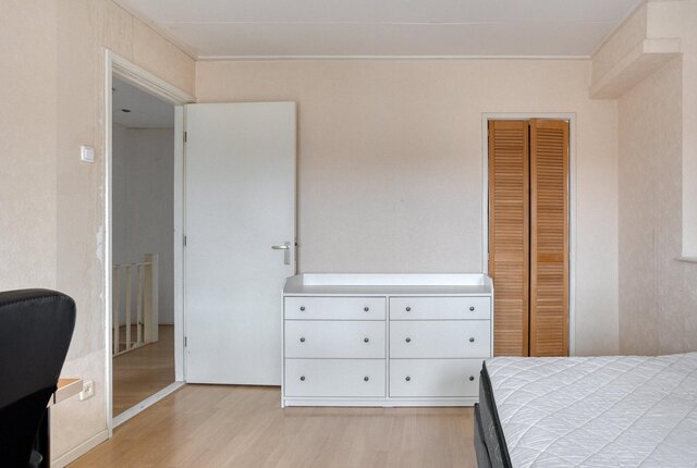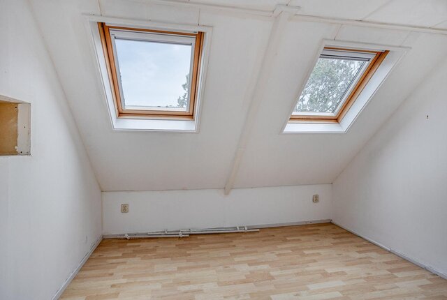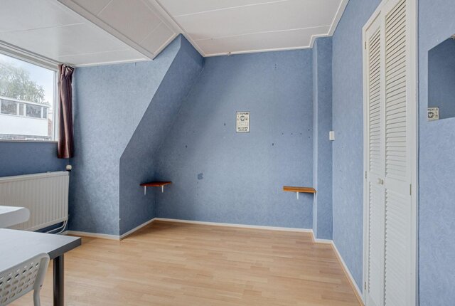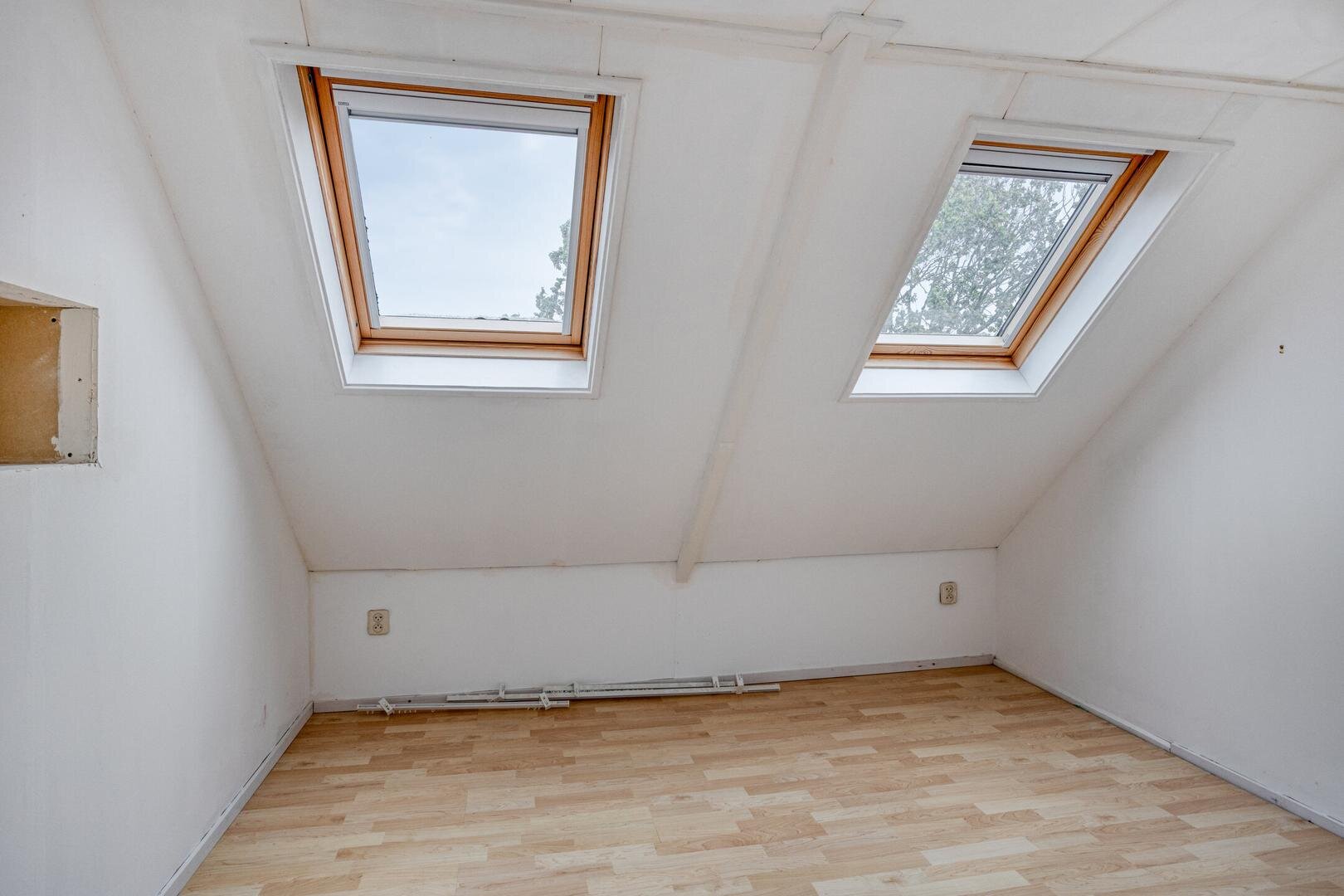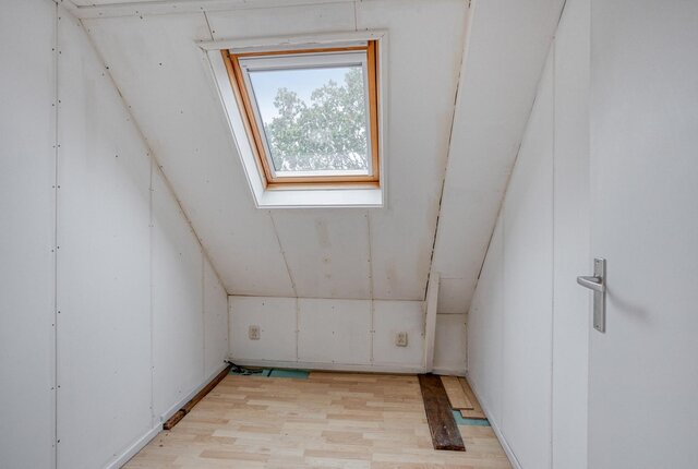 2e verdieping: via vaste trap bereikbare zolder met overloop en aangrenzend de 4e en 5e slaapkamer met dakramen. Veel opbergruimte achter de knieschotten.