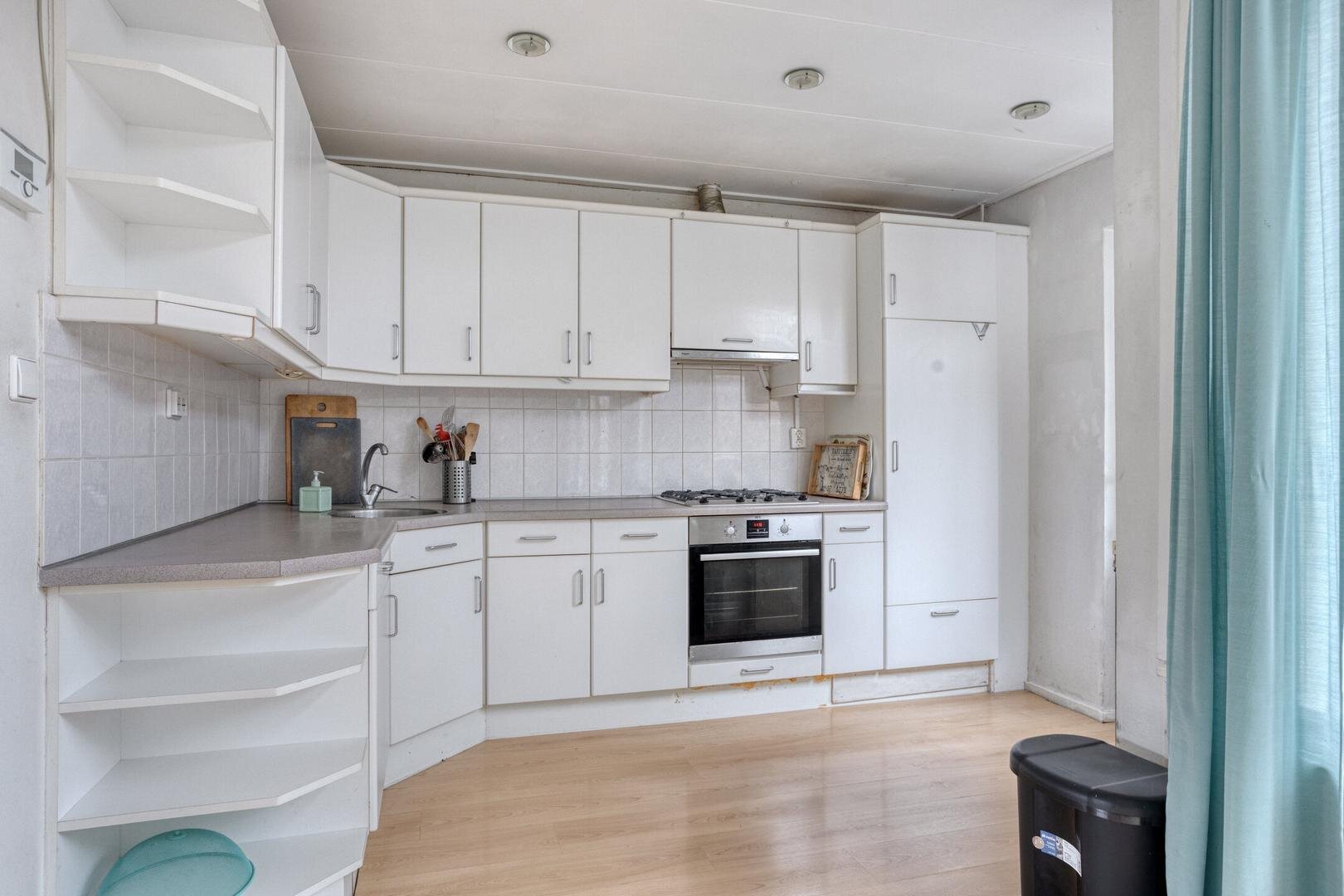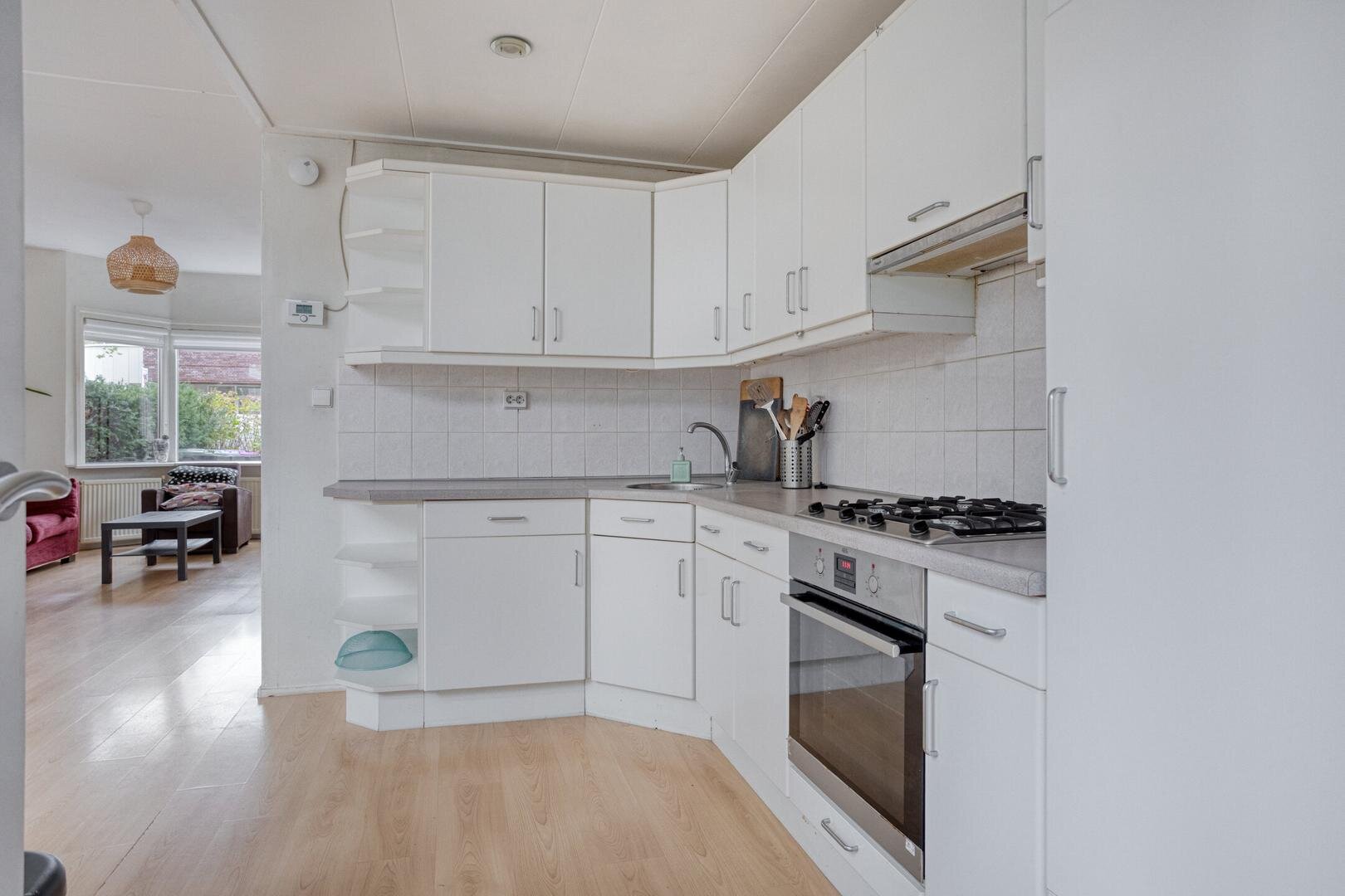 Begane grond: entree, ruime gang/hal, meterkast, trapopgang. Ruime woonkamer met prachtig lichtinval, mooie erker en dubbele tuindeuren naar de 8 meter diepe achtertuin op het zuidwesten (ook bereikbaar via steeg/achterom). Open keuken in lichte kleurstelling en doorloop naar de bijkeuken in de uitbouw aan de achterzijde. Hier bevindt zich de witgoed- en cv- ruimte en het toilet. Achterdeur naar de achtertuin welke is voorzien van een aangebouwde, houten berging. Vaste trap naar: