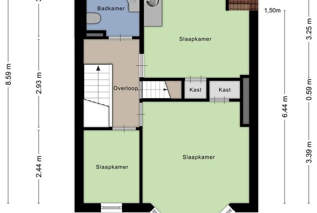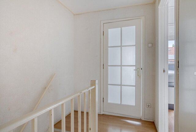 1e verdieping: overloop met aangrenzend 3 ruime slaapkamers en de badkamer met een opbouw waardoor extra ruimte is ontstaan. De achterste slaapkamer en de badkamer zijn voorzien van een dakkapel/opbouw. De slaapkamers aan de voorkant zijn recht opgetrokken en daardoor ook veel ruimte.