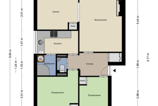 • 2 slaapkamers, ruime woonkamer en dichte keuken