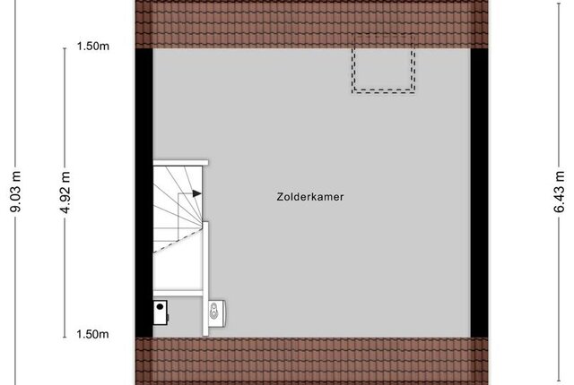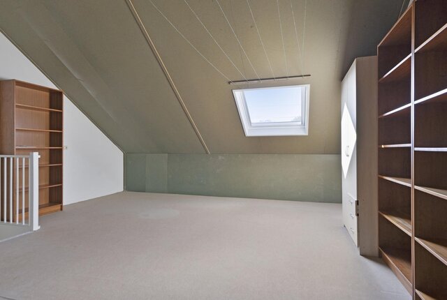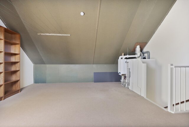 Via de vaste trap bereik je de tweede verdieping. Hier bevindt zich de royale zolder met ruimte voor de 4e slaapkamer of hobbyruimte. De witgoedaansluiting bevindt zich hier, net als de cv-installatie.