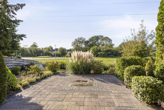 Tot slot, de tuin. Die is bijna 11 meter diep en 8,5 meter breed, ligt op het zuiden en is verzorgd aangelegd. De woning staat op 240 m2 eigen grond en het via een steiger bereikbare open vaarwater biedt een directe aansluiting op het Van Harinxmakanaal via de Wirdumervaart met een doorvaarthoogte van circa 2,5 meter!